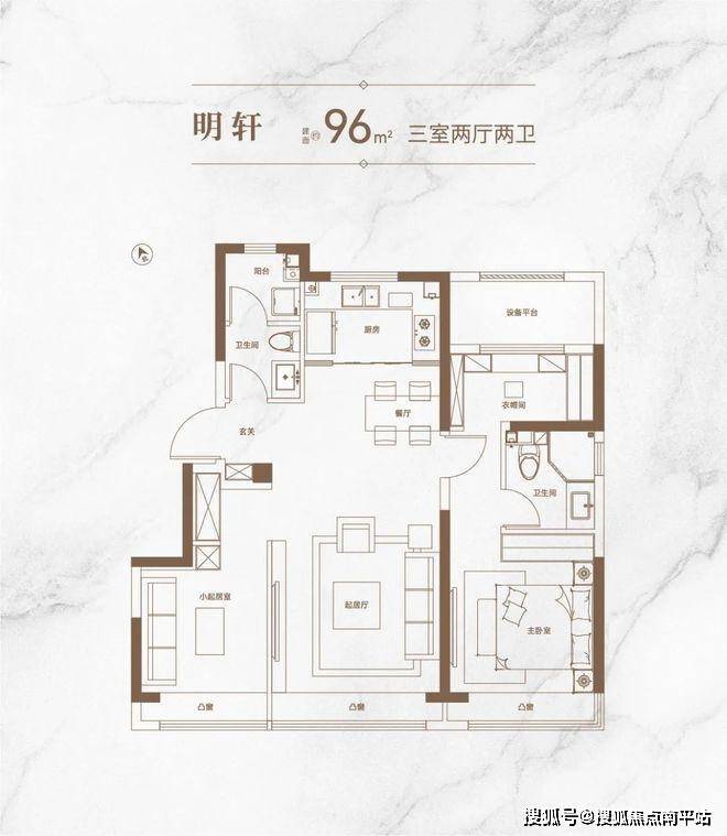96㎡户型:全明南北通透格局,奢阔阳光宽厅,开放式LDK餐厨一体化,提升空间的通透感和宽敞度;更预留灵动拓展空间,满足家庭每阶段的不同需求。