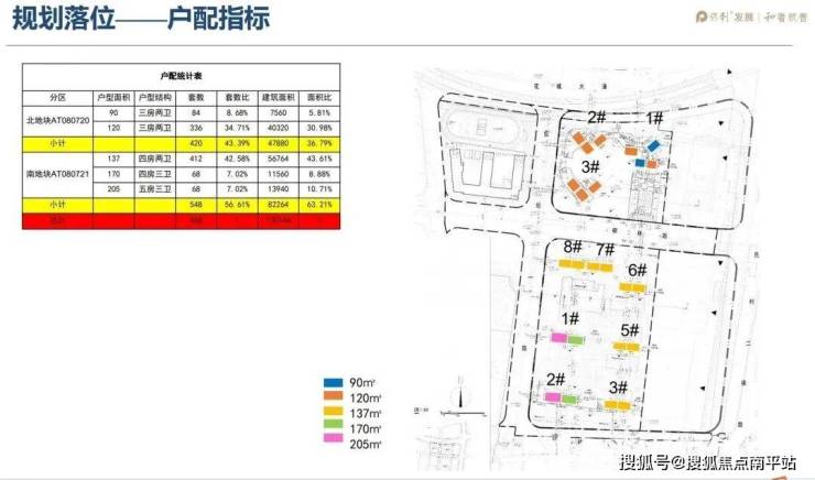 保利天曜分为南北地块开发,其中南地块是板楼设计,共有8栋楼,北地块是塔楼设计,共有3栋楼。