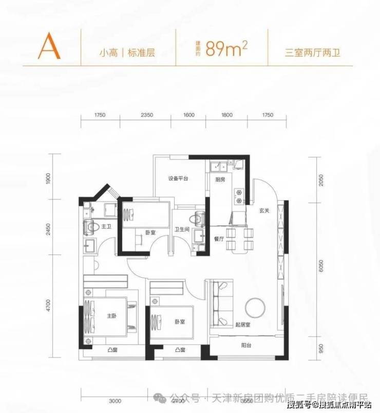 小高89平米,三室两厅两卫