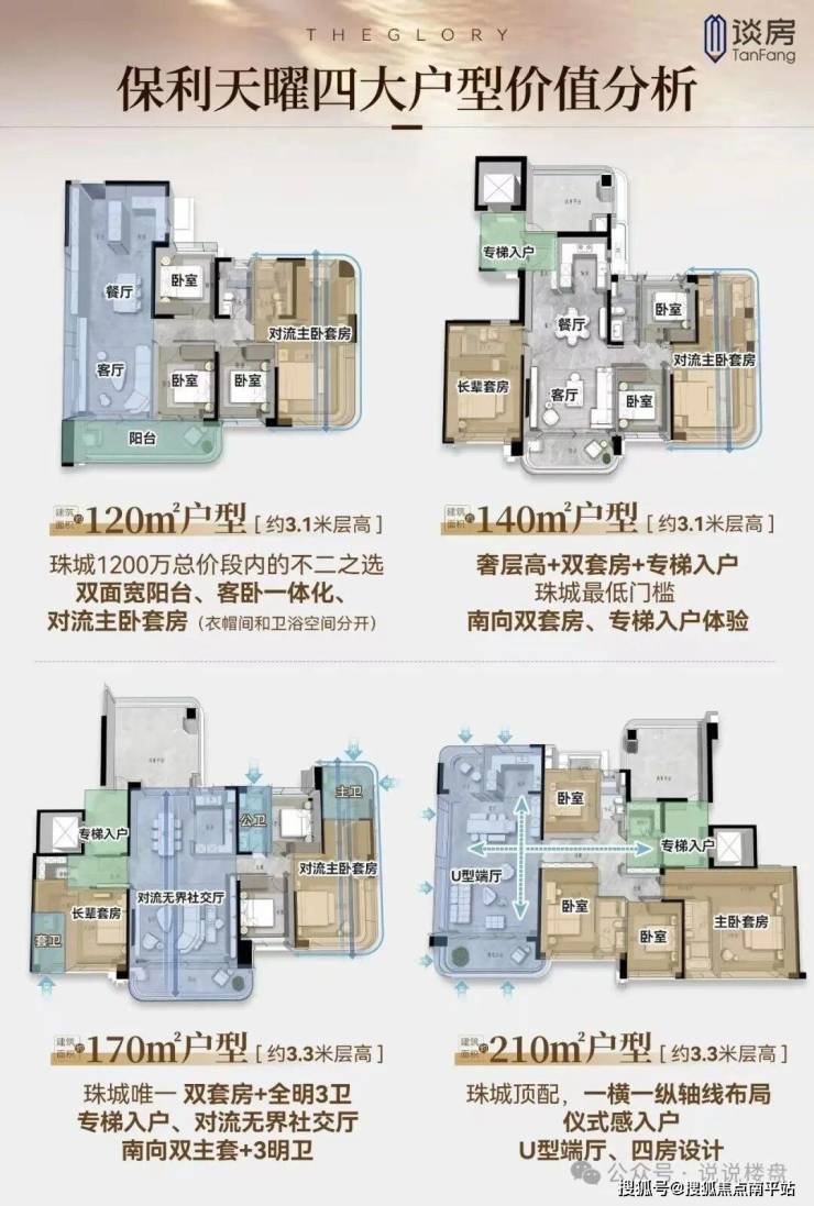 作为主力改善户型,它同时实现三大奢级享受:约3.1米层高、南向双套房、专梯入户体验。