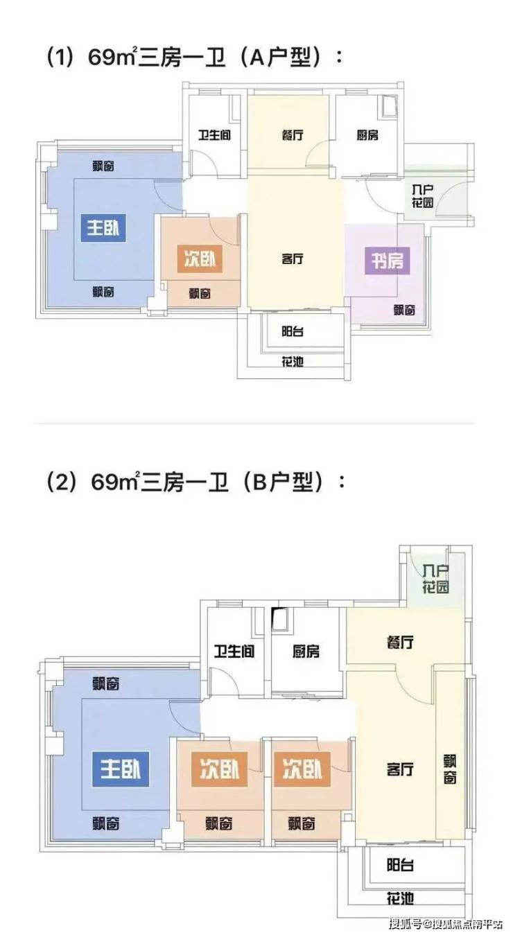 目前具体户型图已公布,68平预计是南北对流的产品,可以参考下图。