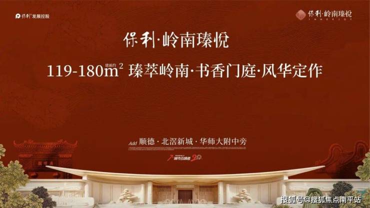 保利发展华南公司,2005 年落子佛山千灯湖,保利深耕佛山二十载匠心钜作,超 30 万业主认证,佛山首个【瑧悦】系升级之作,传承悦字系新中式销量+质量口碑。