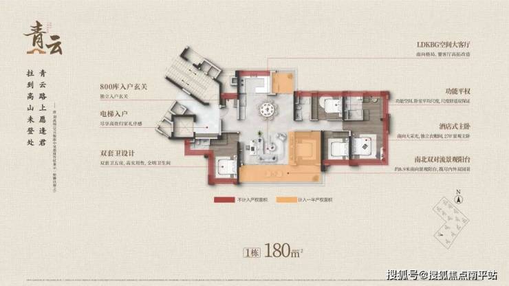 约 180 方 :专梯专户|步入式 800 玄关库|约9 米全景阳台|女王级衣帽间|灵动双套房