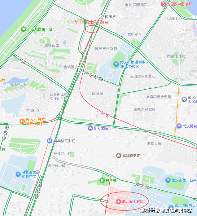 华润积玉桥项目,位于武昌区和平大道与四马路交汇处,属于武昌内环。