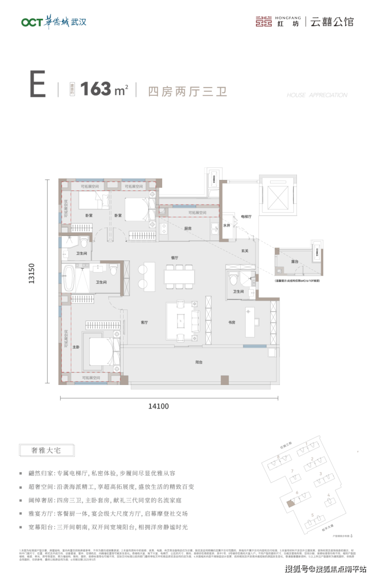 E户型建面约163平,四房两厅三卫