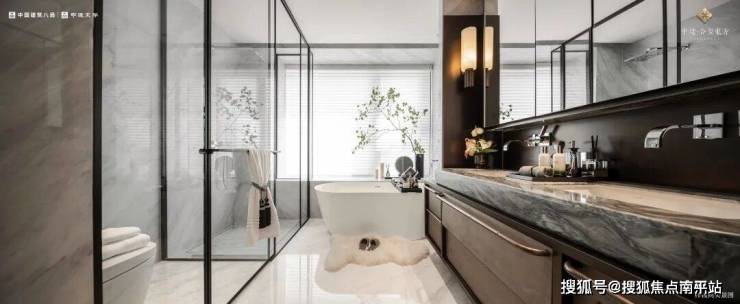 为优化 主卧格局,中建·合玺东方 190㎡的「鎏光」重新规划入口,“扩容了”衣帽间,满足男女主人不同季节衣物的归置需求;临窗处,设置 独立景观浴缸,在私属时光里,让身心在光影交融中得到彻底放松。