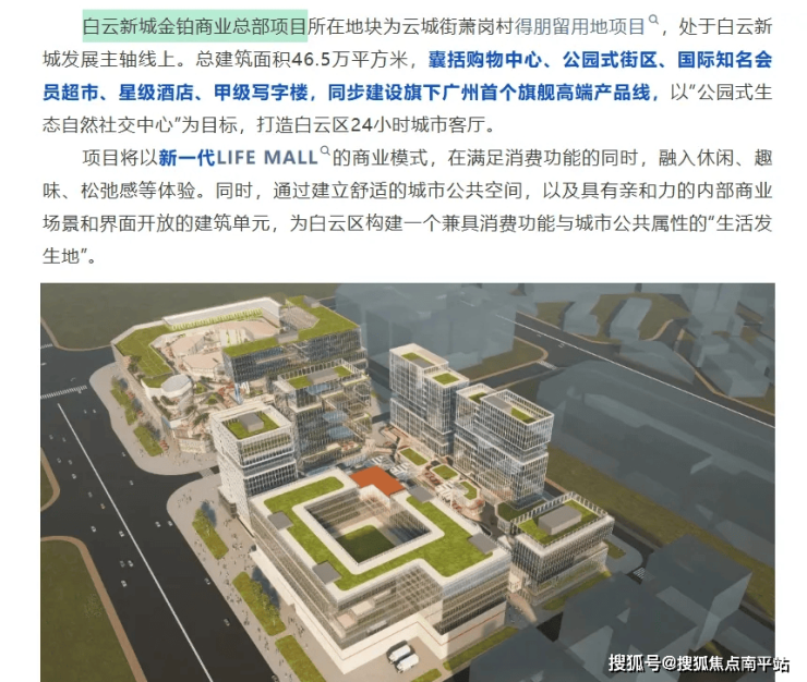 🔹46.5万平方米金铂商业总部位于白云新城核心区将打造旗下广州首个高端商业项目。项目总投资规模大、业态定位高,集商业零售、总部办公等多元功能于一体,与绿地中心、万达广场、无限极广场等重大载体形成集聚效应,将进一步提升白云新城的商业能级和辐射力。