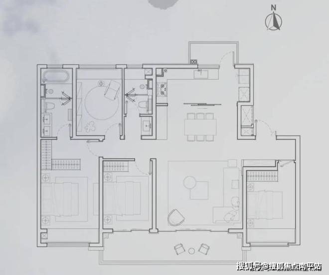 三卧朝南|LDKB格局|双联阔景阳台约2M进深|3+1灵动空间|主卧套房