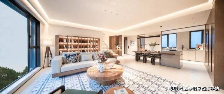 建筑面积约155㎡的高厅平墅,采用立体咬合式布局,通过上下层错位,在每户的客厅内都缔造了一个约30㎡的奢侈挑空。