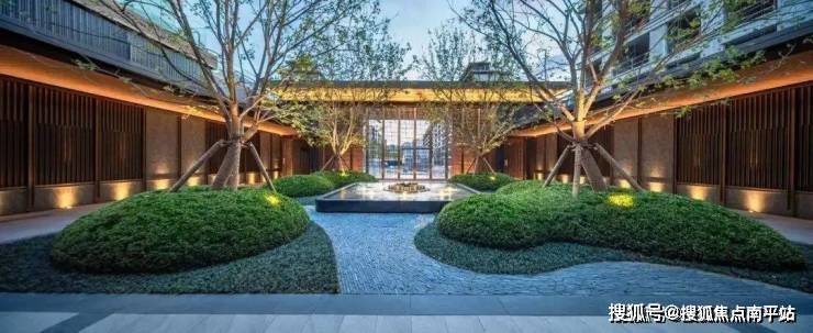 三进香池墨池以曲水流觞营造"身与云轻"的禅意空间,层次丰富的景观植被,赋予空间灵动的视觉韵律;