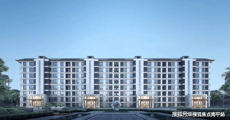 不止于此,中建对于北立面的规格也毫不放松,上有中式挑檐,下有迎宾感极强的入户大堂。