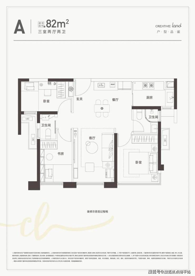 82㎡三房两卫:功能性最强,适合三口之家,建议单价≤2.2 万 /㎡;