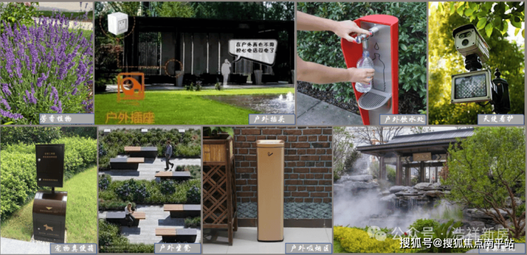设置雾森系统(增加空气中的水分子)、户外直饮水、宠物便箱、户外插头和吸烟区,提升舒适度。
