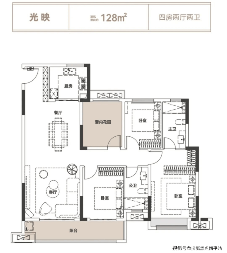 西宸之光二组团,在售建面约107-128-141-172㎡户型,买入门槛适中。其中,172㎡户型为纯粹改善大平层。另外3个小户型各有特点,全部带南向大阳台+室内花园,为最典型的N+1房设计,满足不同家庭对空间及功能的需求。