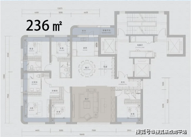 东地块:主打深度改善,2栋超高层+5栋高层,户型面积段约139-198-236㎡。