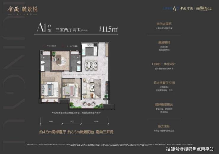其中,建面约115㎡户型,三开间朝南、约4.5米餐客厨一体化空间、约6.5米双联大阳台、主卧南北通透套间设计,空间尺度大。尤其是大阳台、室内花园、景观飘窗的大面积赠送,实际得房可达约92%!