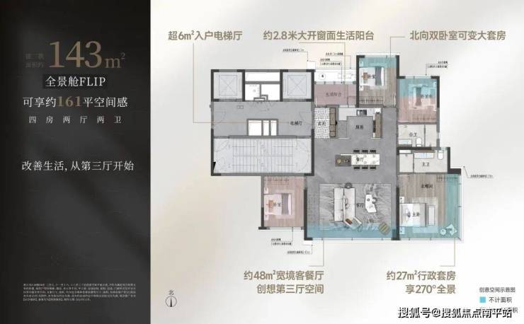 【建面约143㎡端厅户型图】建面约143㎡可享162㎡空间感