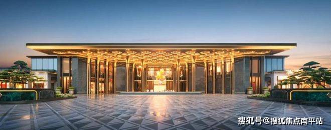 立面以织锦纹+金色铝线条为视觉元素,通过大玻璃幕墙描绘出"锦画框"超级镜面。