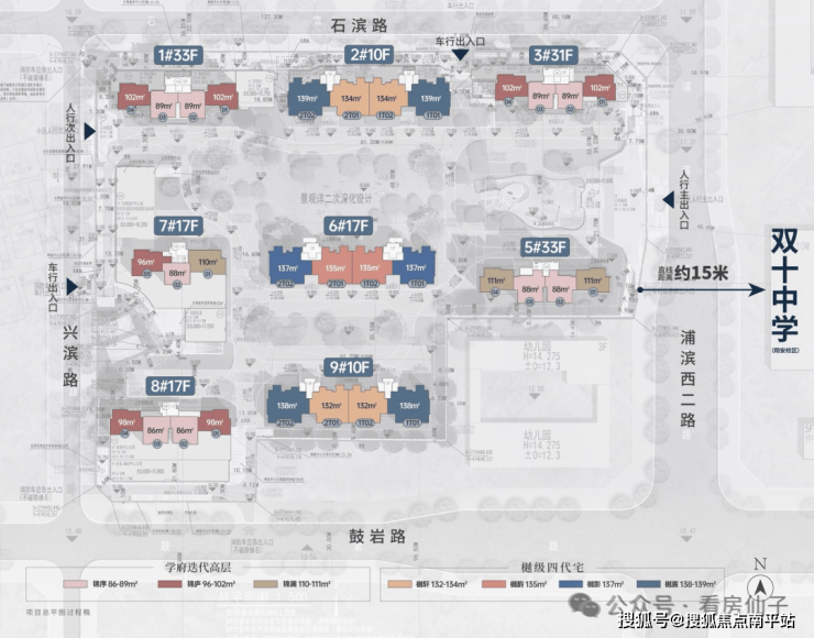 层高:1# 5# 33F 3# 31F 6# 7# 8# 17F 2# 10# 10F 2# 6# 9# 是第四代住宅