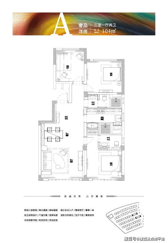 【 产品信息 】楼层总高:全系六层 | 楼层朝向:全品朝南交付标准:品牌精装 | 主力户型:100㎡ 两居 | 104㎡-115㎡三居