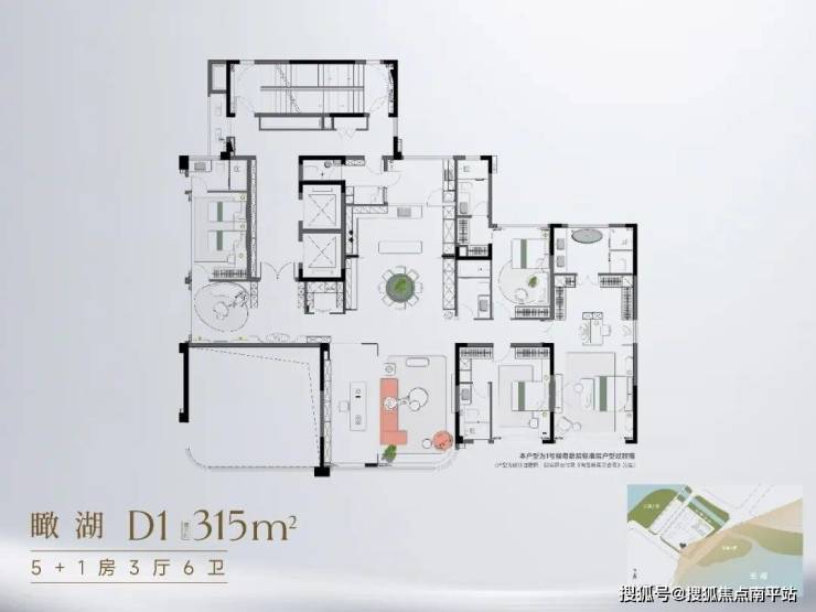 315㎡瞰湖(5+1房3厅6卫):