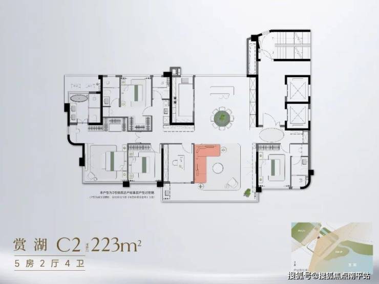 【看湖视野最大化】以“极致景观占有”为核心,打造家族尊享级居所。东南向无遮挡湖景、溪景与园景,五开间东南朝向设计,让四个房间和客厅阳台均能观赏湖景,主卧和阳台的转角窗更是实现“一面看湖景,一面看溪景”的双重享受,户型看湖面宽约21米,景观视野绝佳。