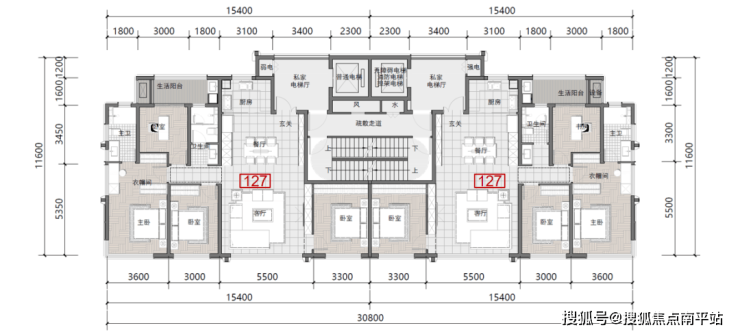 户型① 建面约116+128㎡户型