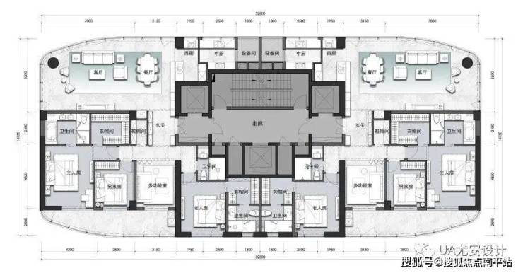 大平层住宅:主力户型为236㎡和296㎡,均为四房或五房设计,采用一梯一户配置,南北通透,部分户型可直面江河景观。