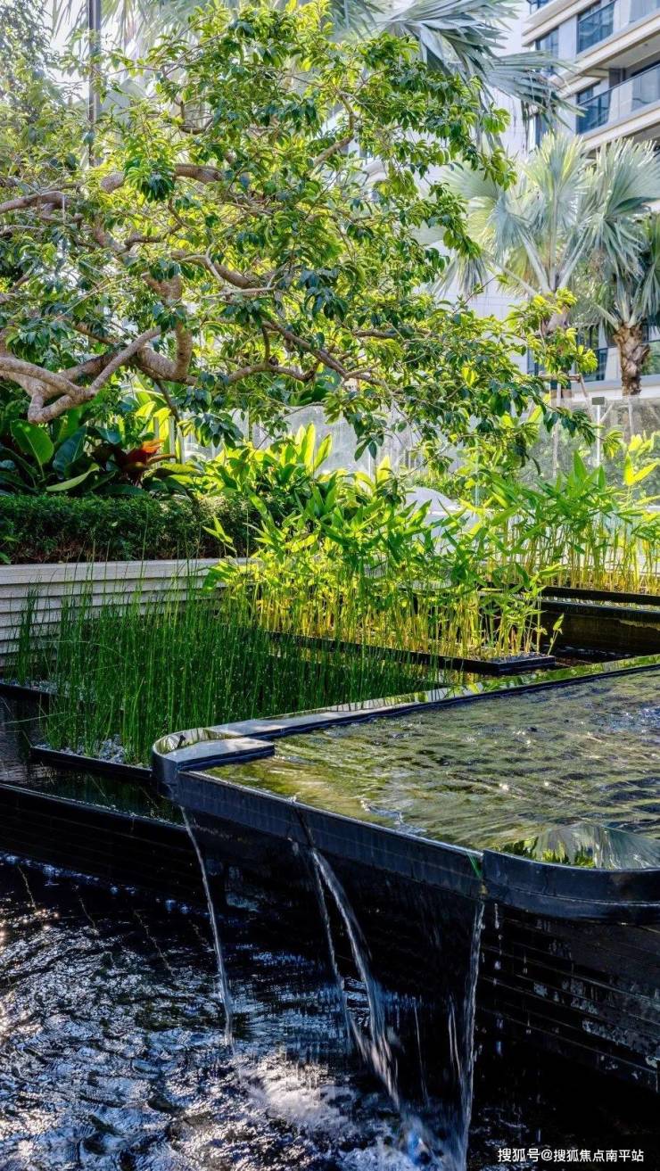 营造“双轴、六境”围合的六感生活空间,通过“观礼、听泉、触石、嗅香、品茗、享遇”六大场景。全冠移植,挑选出大量成年名贵树种:南大堂两侧臻选南山不老松,斜飘红果冬青,桫椤等稀贵植物,营造绿意盎然的林间氛围。在静谧花园、海岛童趣、疗愈花园、流水音廊、悠享泳池等五感互动场域里,赋予休憩、陪伴、社交等多元静态场景。