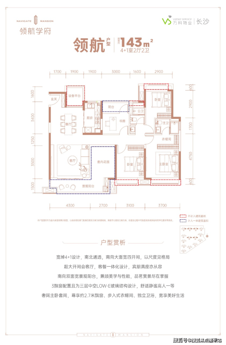 全屋有双阳台+设备平台+套内花园+四飘窗,得房率超高,可拓展性强。
