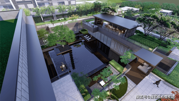 园林大手笔采用 下沉式庭院设计,搭配大面积水系景观,更有立体感、观赏性。
