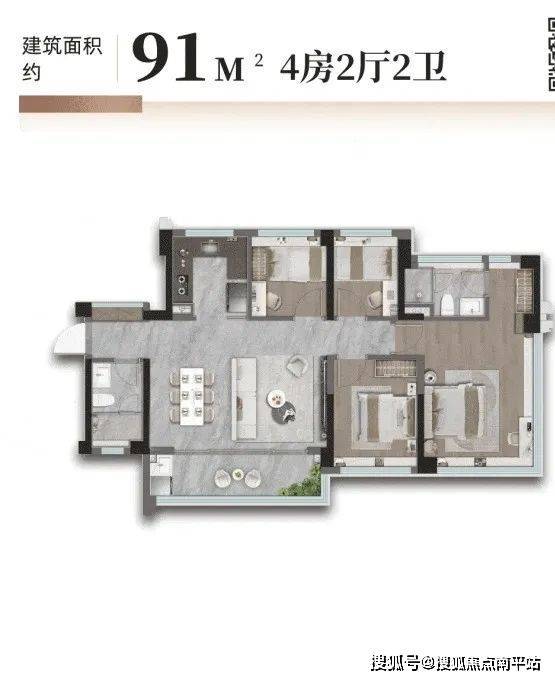 在常规开发商手里,约90㎡只能压缩出三房,而金湾府的「空间折叠术」让91㎡生长出约5.7米的无界大横厅、四间全功能卧室,以及全屋飘窗。