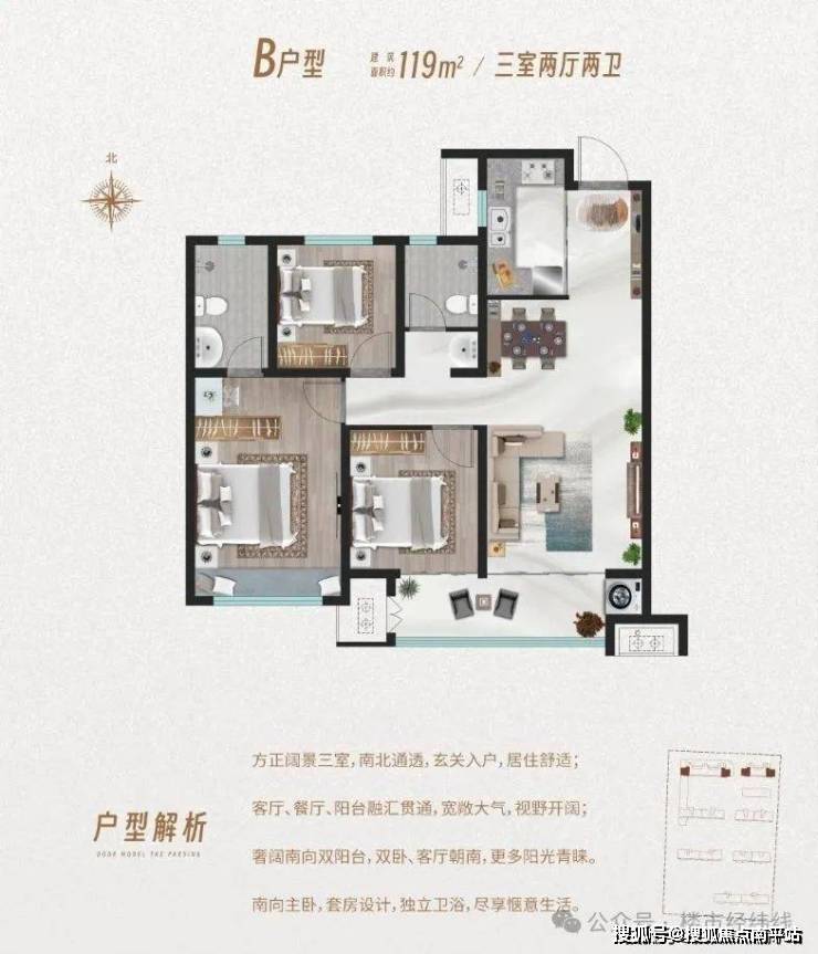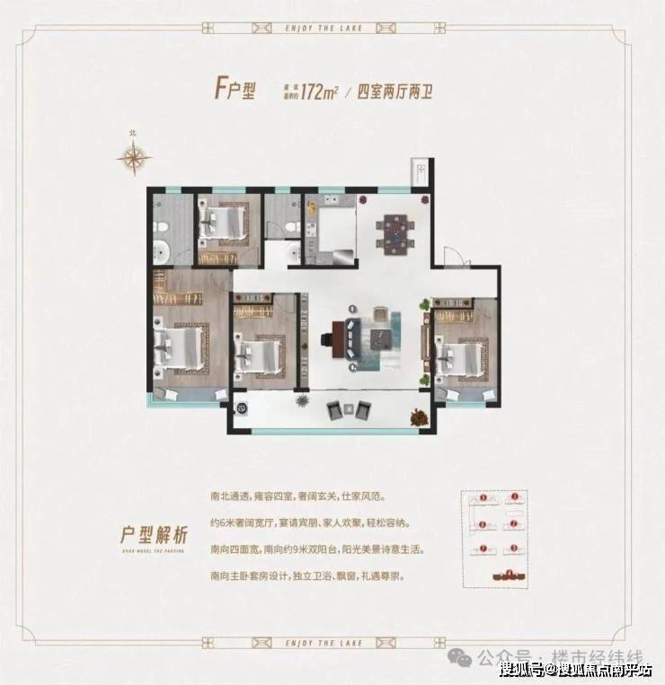 总建筑面积约8.7万㎡,总户数530户,规划2栋高层,2栋小高层,3栋洋房,绿化率35%,建筑面积约105-172㎡水岸美宅,谨献向往水岸生活的少数人。Ⓐ售楼处电话☎400-159-8559转接5555(来电预约)
