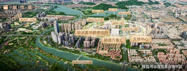 项目规划计容建面积超50万㎡,定位为华润置地在顺德复刻“深圳片区统筹(南山模式)”的城市综合体项目范本,北侧为别墅大平层豪宅区,南侧是省一级顺峰名校,以及顺峰山公园、桂畔湖;东侧是云近滨河公园,西侧是成熟商圈,可谓是“出则繁华,入则宁静”。