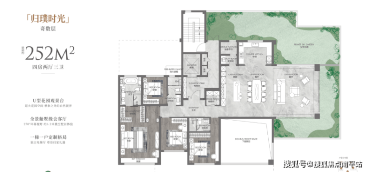 户型设计惊艳全场:252㎡户型配备约6.2米双层挑高客厅,打破济南大平层设计天花板;270°环绕式空中花园约102㎡,体验堪比空中别墅。