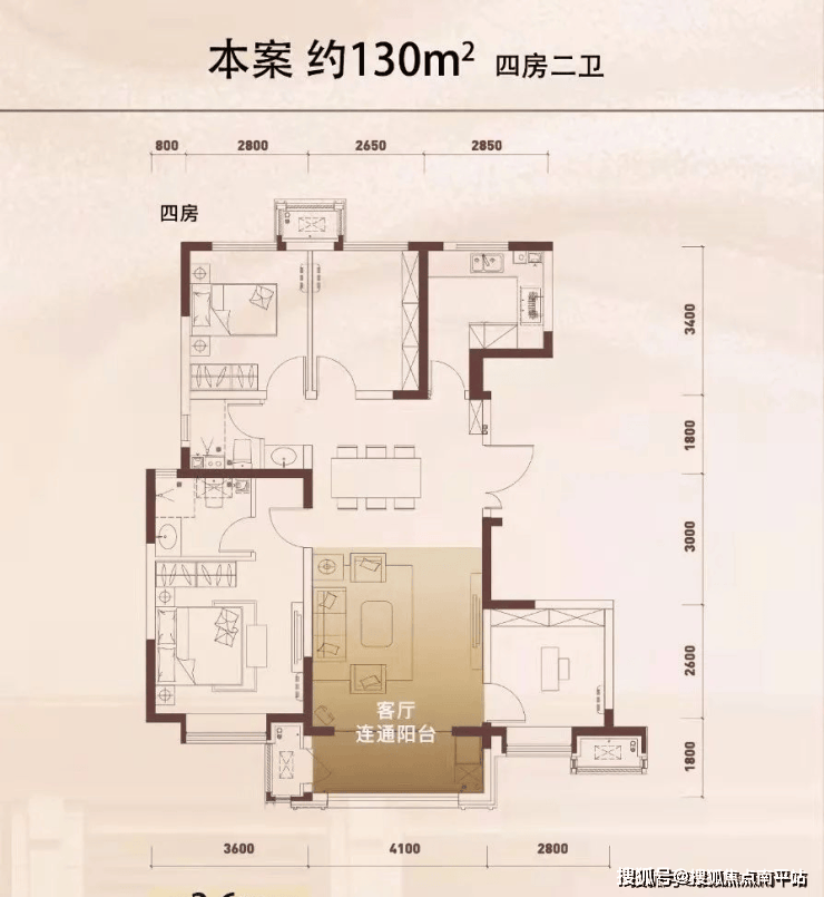 3#(2梯4户)130平米 ,
