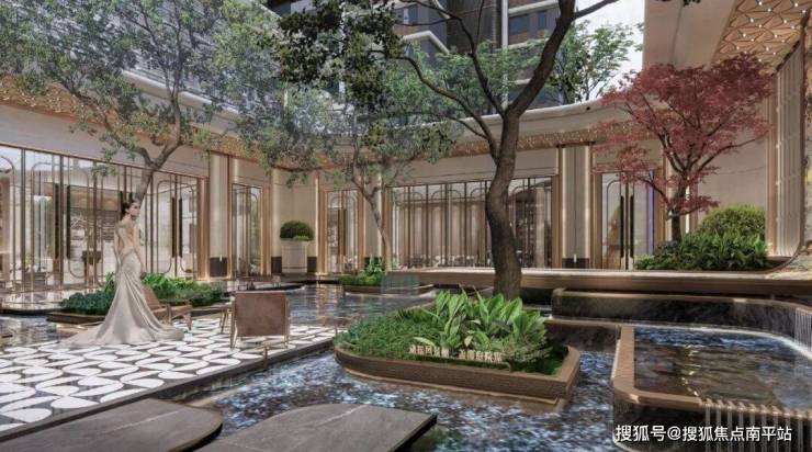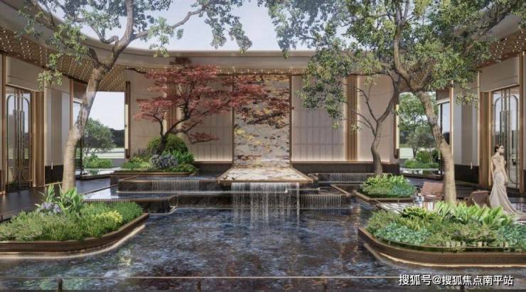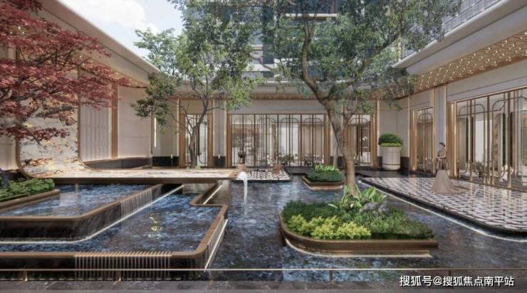 被会所环绕的精致水庭,以四方天井的格局,暗合「四水归堂」寓意。
