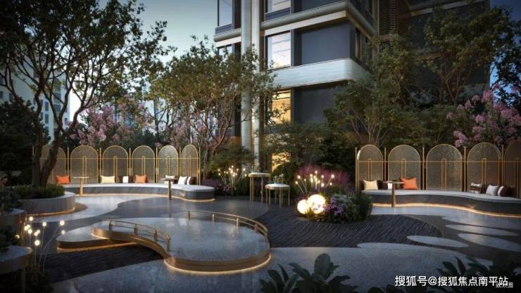 「鎏金水庭」作为进入大门后的第一主景,承担起「假日疗愈场」的角色。