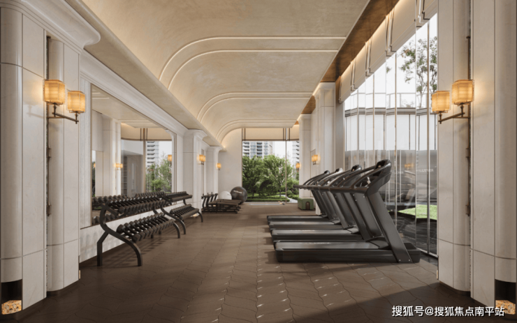 它被设置在二层儿童区外,是一处 围合式拱门连廊空间,以「隔而不断」的形态,更优雅地引导居民在园林层的动线。