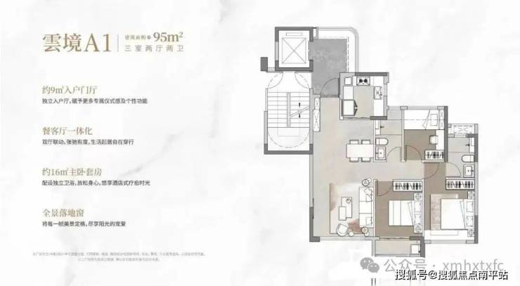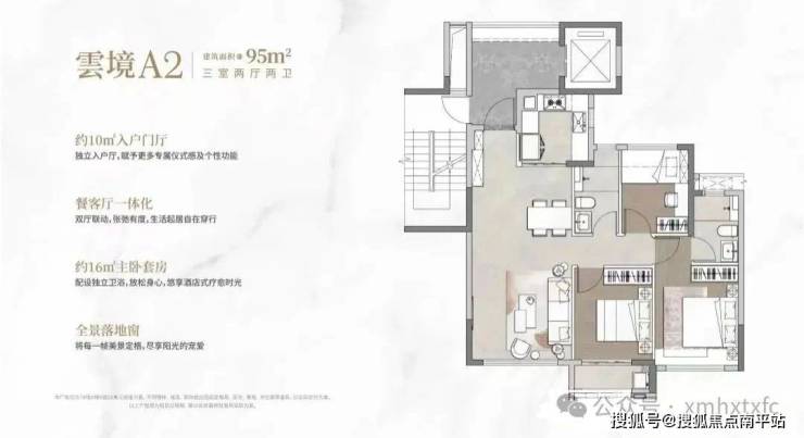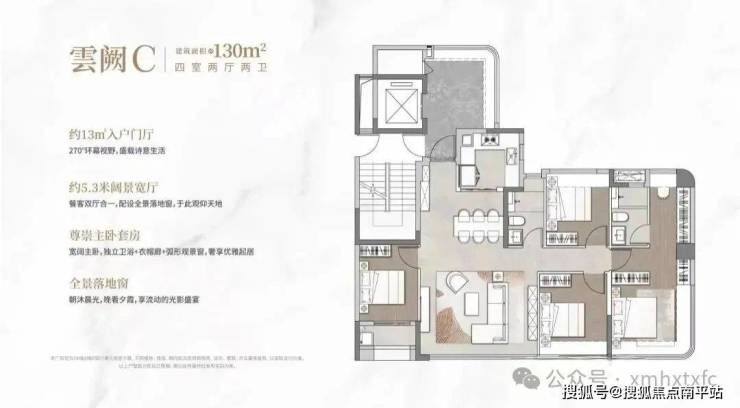 楼盘由7栋15—17层的洋房小高层组成,合计340套,最小面积95平,没有特别小,最大是143平四代住宅,定位是品质刚改/改善型社区,也是同安目前第一个四代住宅!