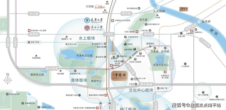 河西腹地,天塔之荫,卫津路与宾水道双中轴核芯交汇处,以项目为圆心,约3KM半径内汇集水上一奥体一天塔一文化中心!