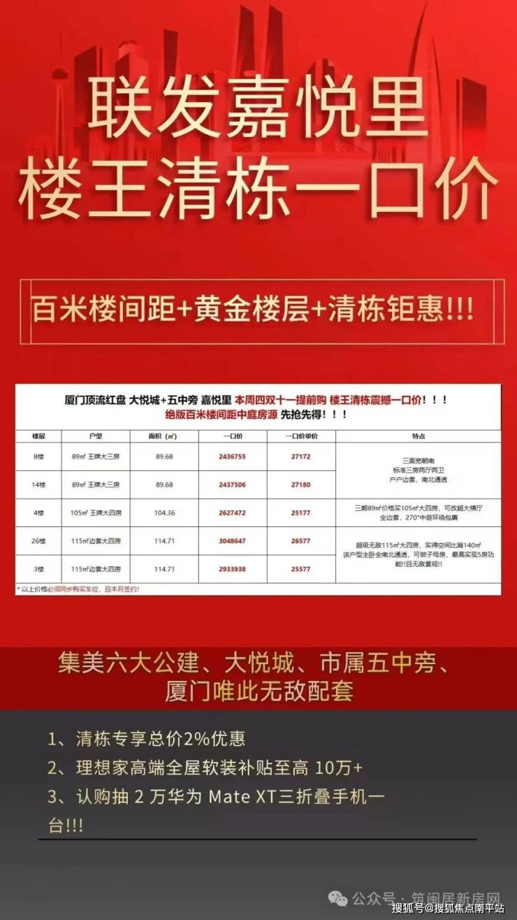 集美新城大悦城旁的联发嘉悦里3期1#楼,成交单价预估2.88万元/平起!!