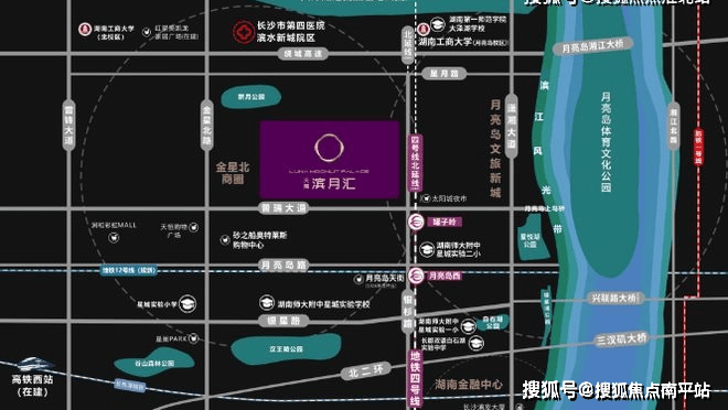 交通配套:地铁 4 号线罐子岭站为该项目预留了一个地铁站出入口,近抵兴联路大桥、三汊矶大桥,坐拥银杉路、普瑞大道、潇湘北路三大主干道,交通出行十分便捷。