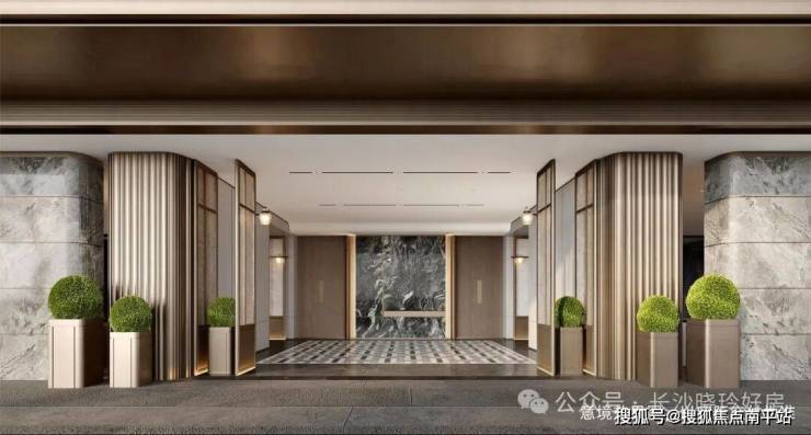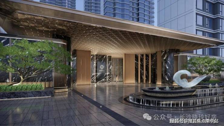 “云珮叠水”礼宾广场;超6米高星曜挑檐,尽展奢雅礼仪门庭;约5.8米挑高“奢金”礼序大堂,揭启归家序曲。