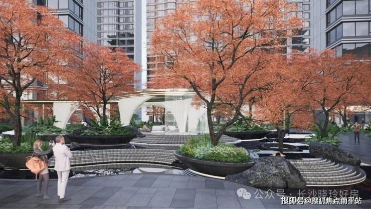 约500㎡叠瀑镜水+云影回廊+城市浮岛,构筑超2000㎡多层级景观序列。