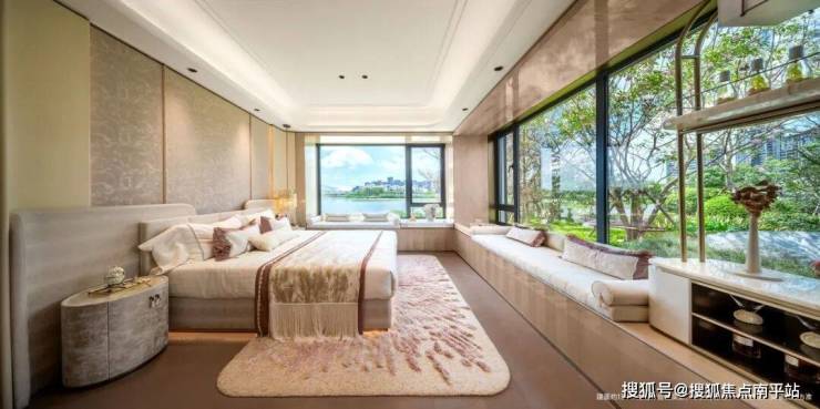 第四代宅“空中大院”,把庭院搬到湖海上空,无界湖海观礼,立面高定玻璃幕墙,超高窗墙比,且所有卧室均采用三层LOW-E玻璃,保证卧室静谧,光幕立面,演绎现代天际美学。