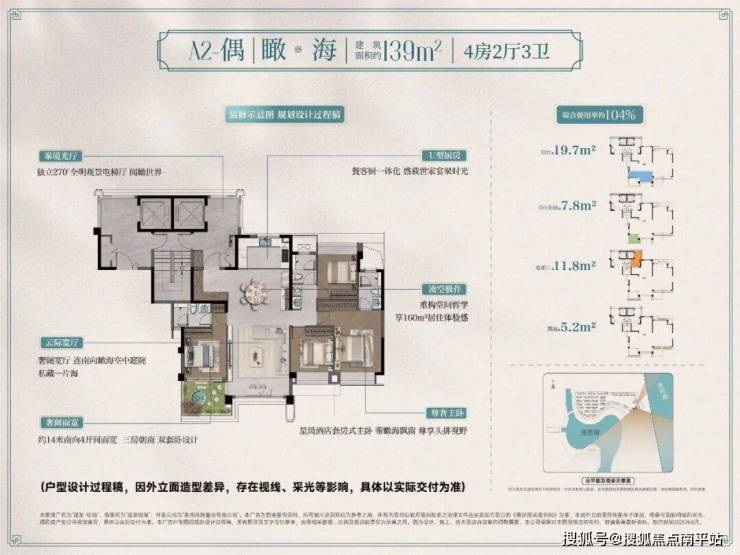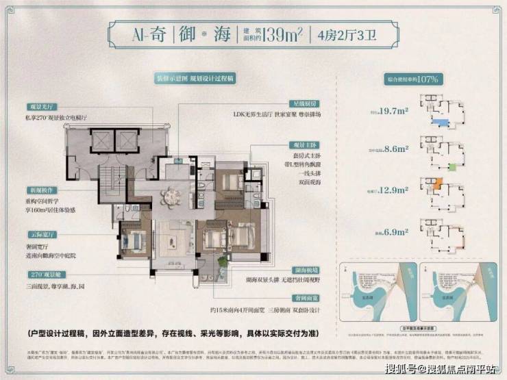其中 5#是一线湖海双景,户户头排无遮挡,建面约181㎡的临湖端户只有14套;6#打造的是三面采光的环幕端户,湖、海、园三景同框,奢享三重美景,这湖海资源、南向头排尊位,视野无敌。