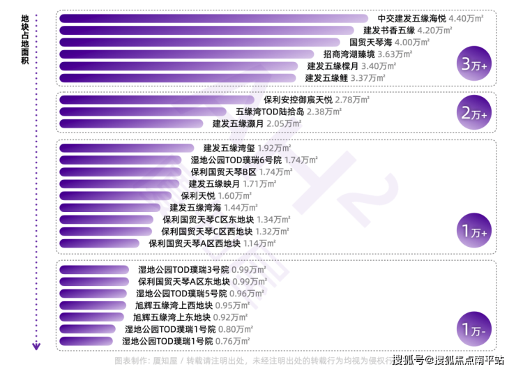 北岸则呈现了另一番景象,以3-4万㎡的大地块为主,最小的地块2022P20(五缘湾海)也有1.44万㎡的占地面积。