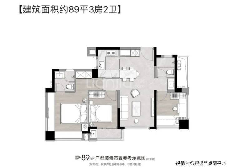 :与一期89平类似,但二期可能优化了布局,提升空间利用率。