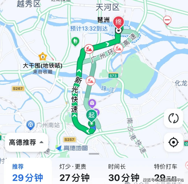 自驾去琶洲:出小区上兴业大道转到新光快速,再转新滘路至科韵南路,全程20公里,耗时29分钟左右。